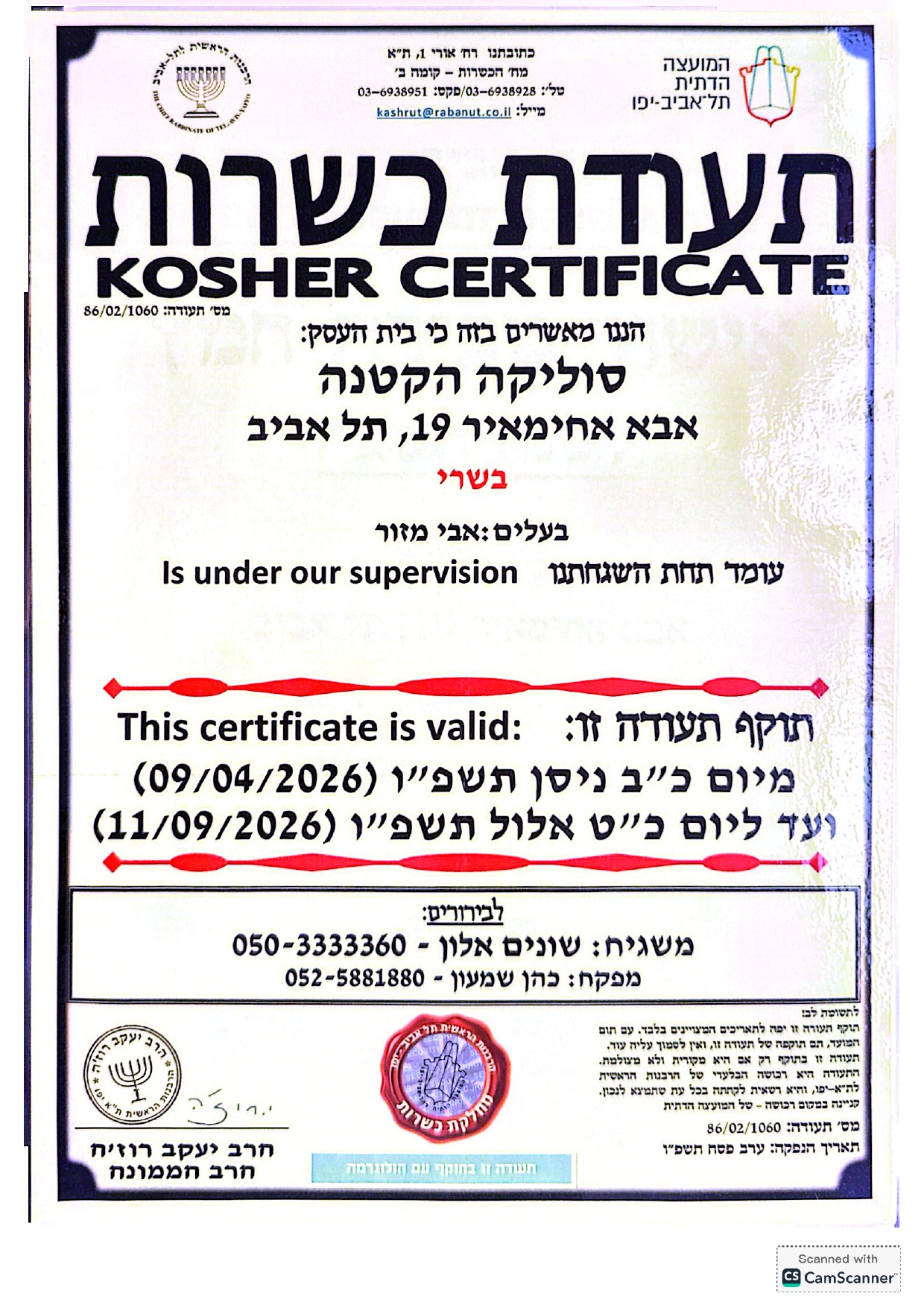 בכל בוקר מגיעים צוות המטבח והשף ביטון ומבשלים אוכל טרי ואיכותי מהמתכונים העתיקים של סבתא סוליקה תוך כדי שימוש במתודיקות בישול עדכניות ובציוד מטבח מהטובים בעולם.